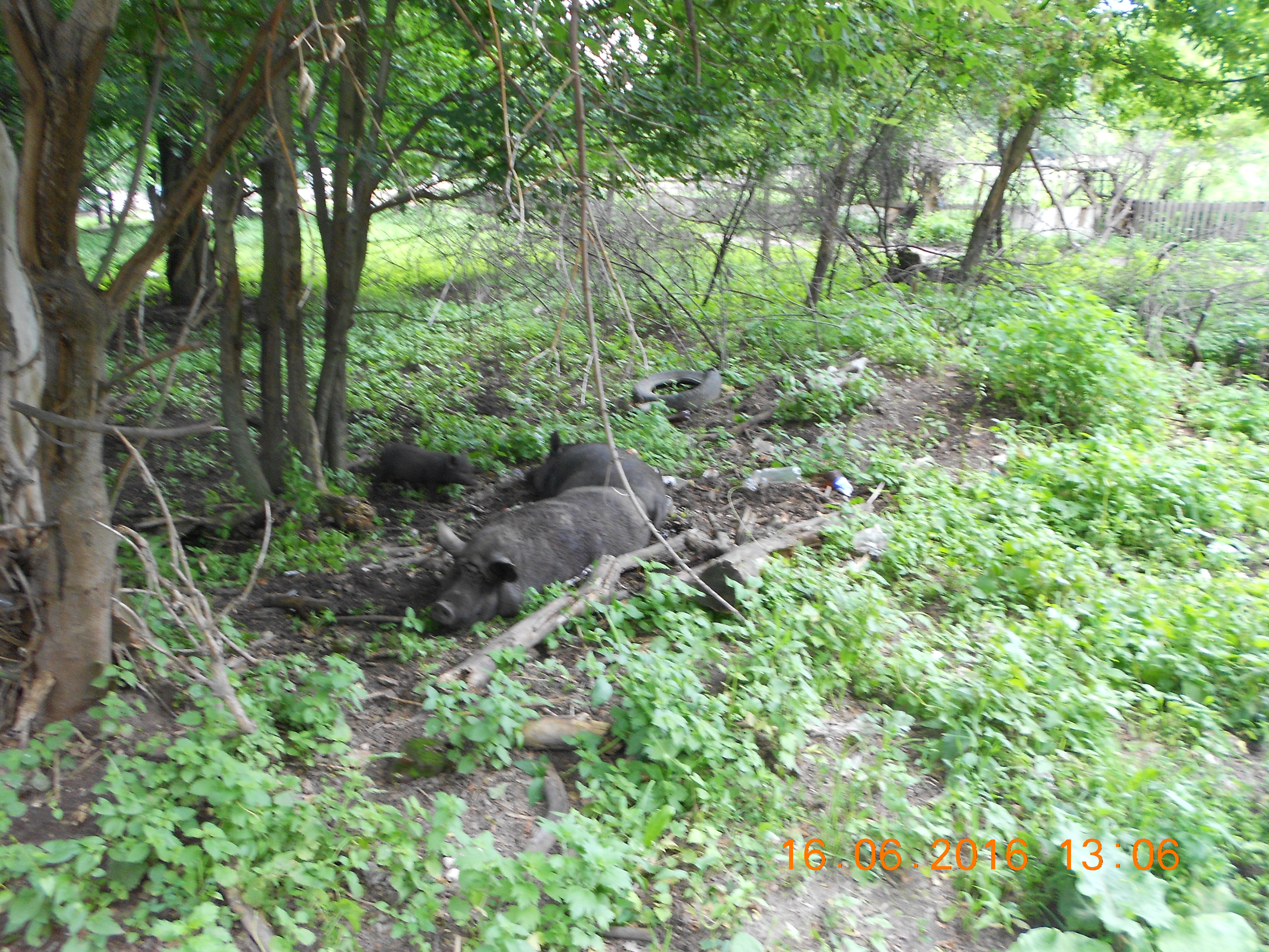 Возле грунтовой дороги, которая подходит к захваченной Таранченко территории под деревьями паслись стада коз, овец и свинки с поросятами.