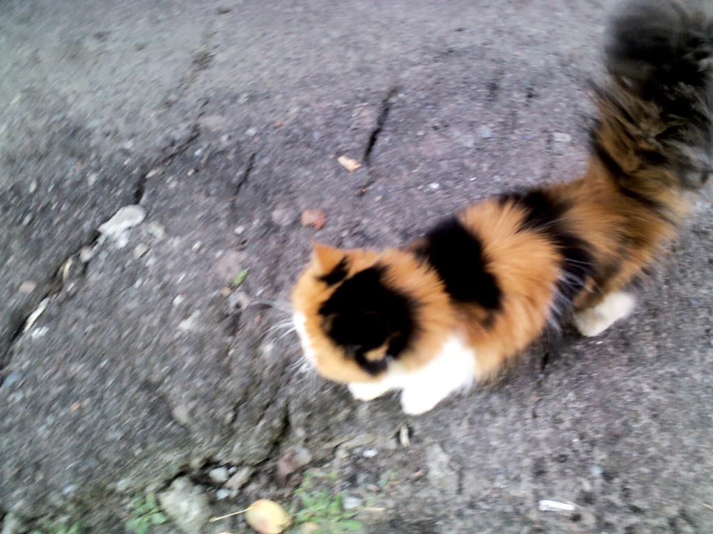Вот сфотографировала сегодня кошечку на телефон, получилось неважно, но что есть. Помогите, пожалуйста, разместить в соц. сетях. В этом доме умерла женщина. Говорят , что это, возможно, ее кошка. Дочь продала квартиру, а кошку выкинули на улицу.