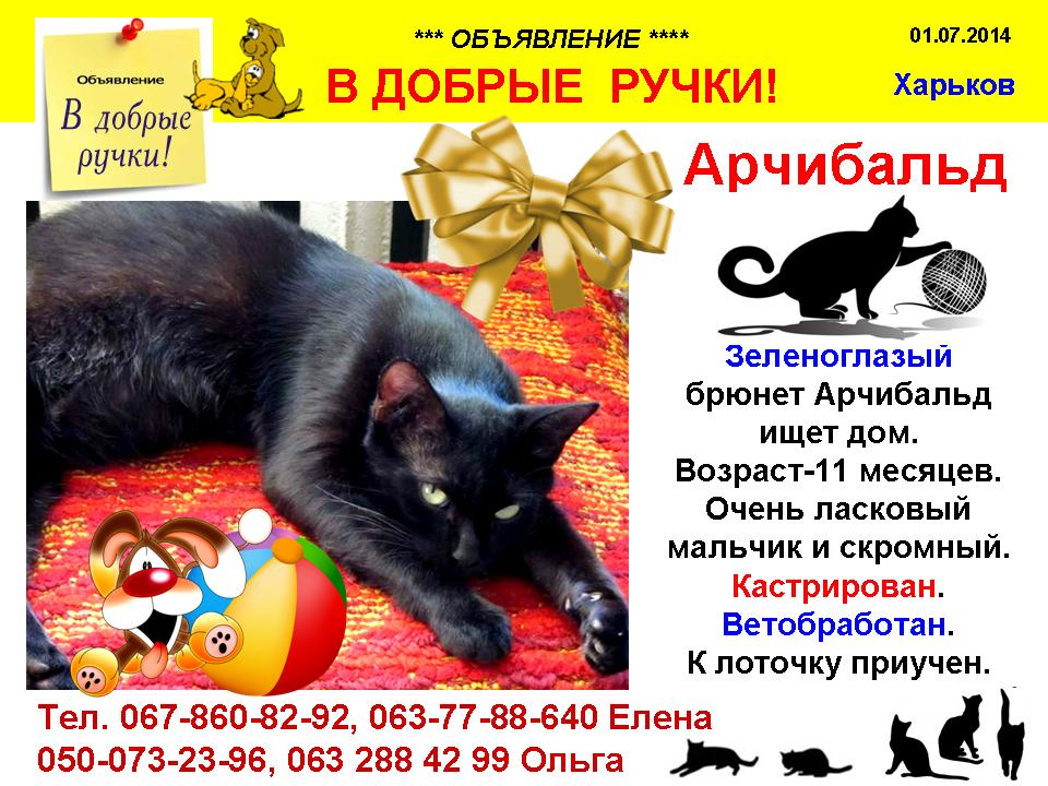 Жгучий брюнет Арчибальд ищет дом (11 мес)
