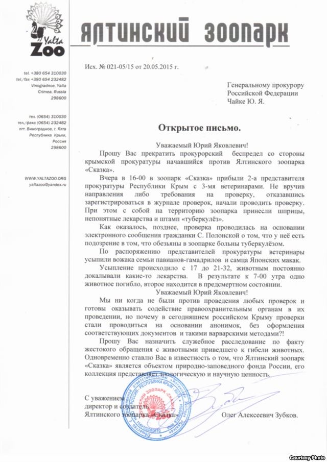 Открытое письмо генеральному прокурору от дирекции зоопарка