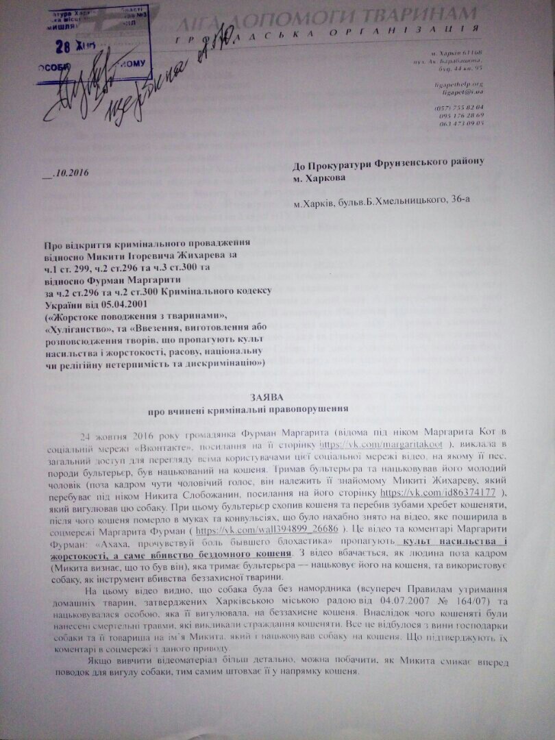 Вчера подали в Чугуевский отдел полиции заявление на Слободяника А.В.