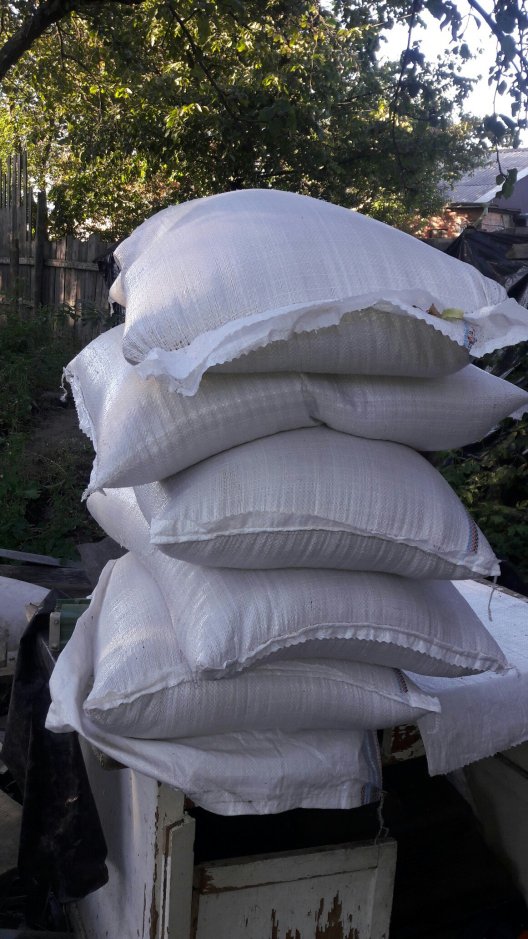 Сегодня днём купили на оставшиеся 294 грн 2 мешка крупы по 150 грн на Центральном рынке. Вечером завезли собакам. Новых поступлений не было, на балансе "0".