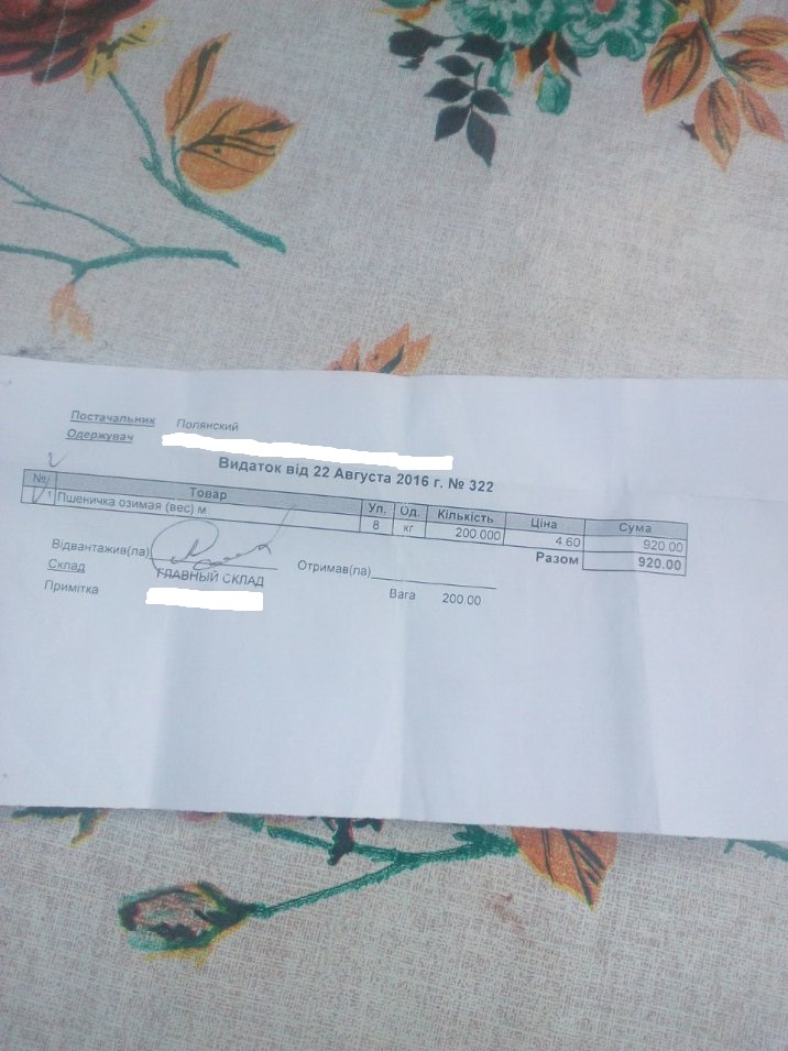 22.08 привезли 200 кг пшенички по 4,60 грн (200*4,60 = 920 грн). По понятным причинам адрес я убрала. На данный момент новых поступлений не было. На балансе нуль.