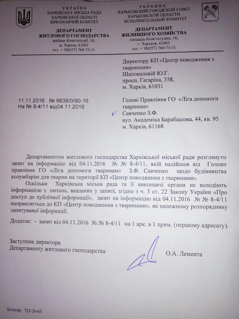 Также направила запрос в Харьковский горсовет (по этому же поводу).