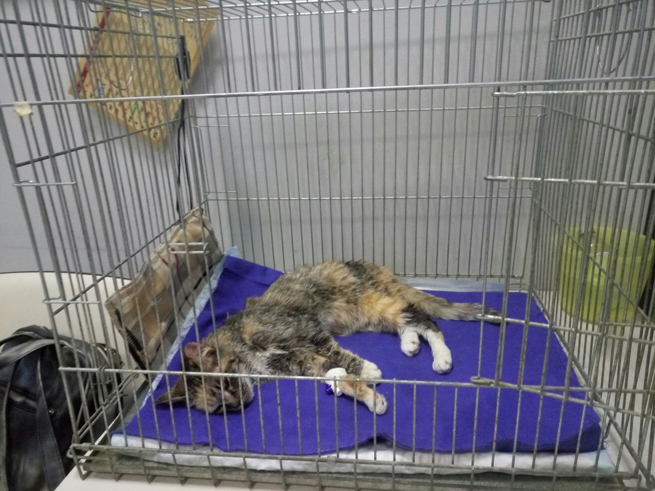 Сегодня я снова её проведывала. Ей немного лучше. Мара реагирует на поглаживания. Я купила ей Рикавери, но она отказалась от еды. По-прежнему капают р-р Рингера и глюкозу.