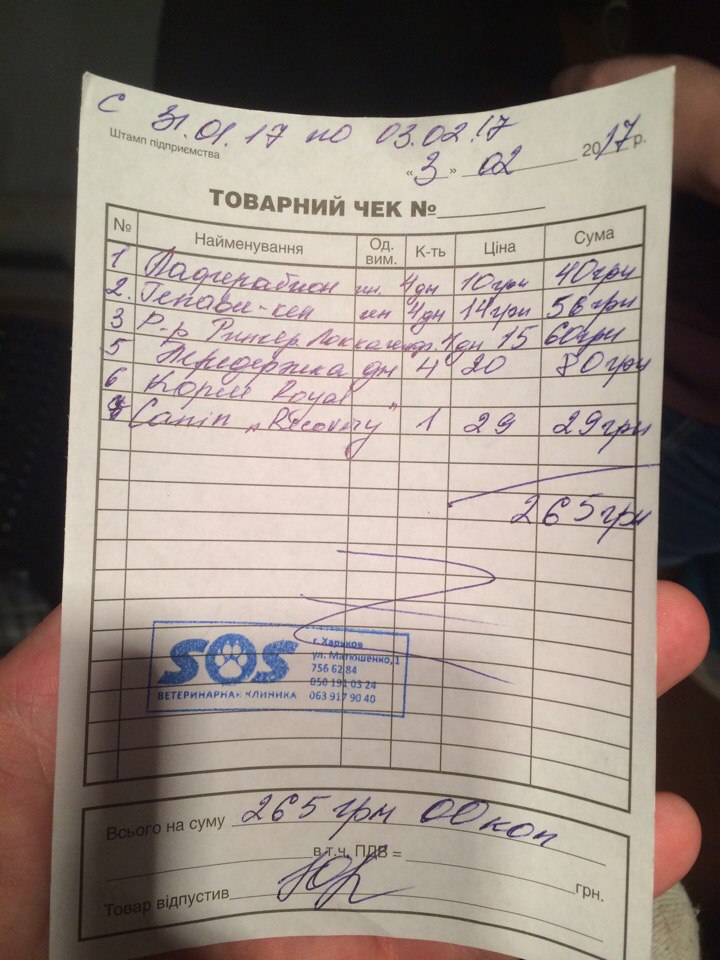 Оплатила передержку за 4 котов 800грн. с 16 февраля до 16 марта 2017г.