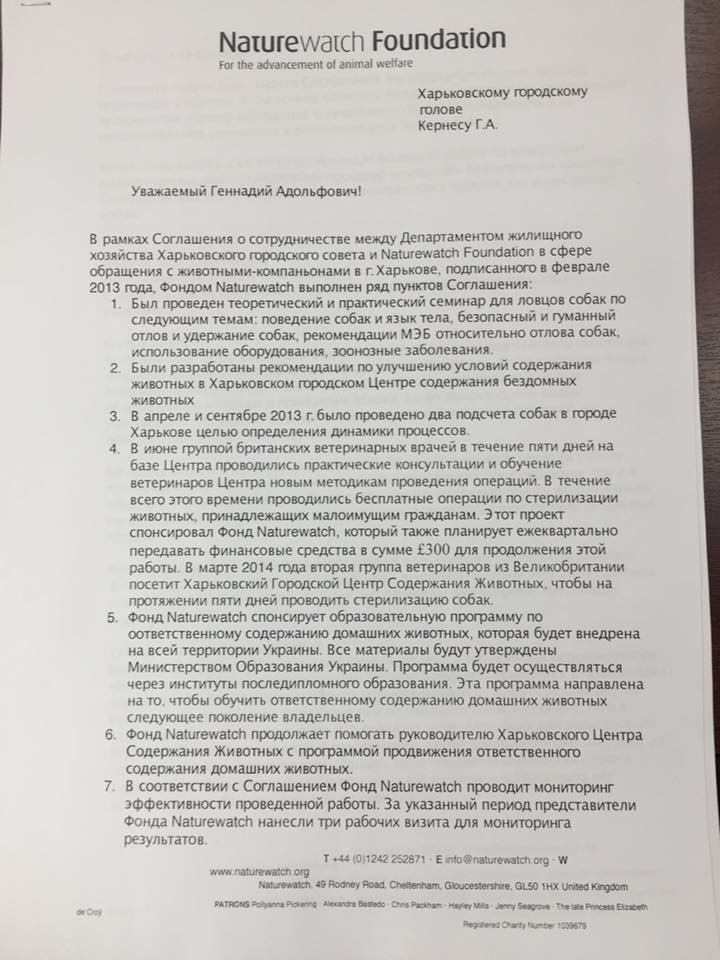 1. С 2013 года, т.е. с внедрения программы безвозвратного отлова (= усыпления) животных сотрудничество как с этой международной организацией, так и с местными, было прекращено.
