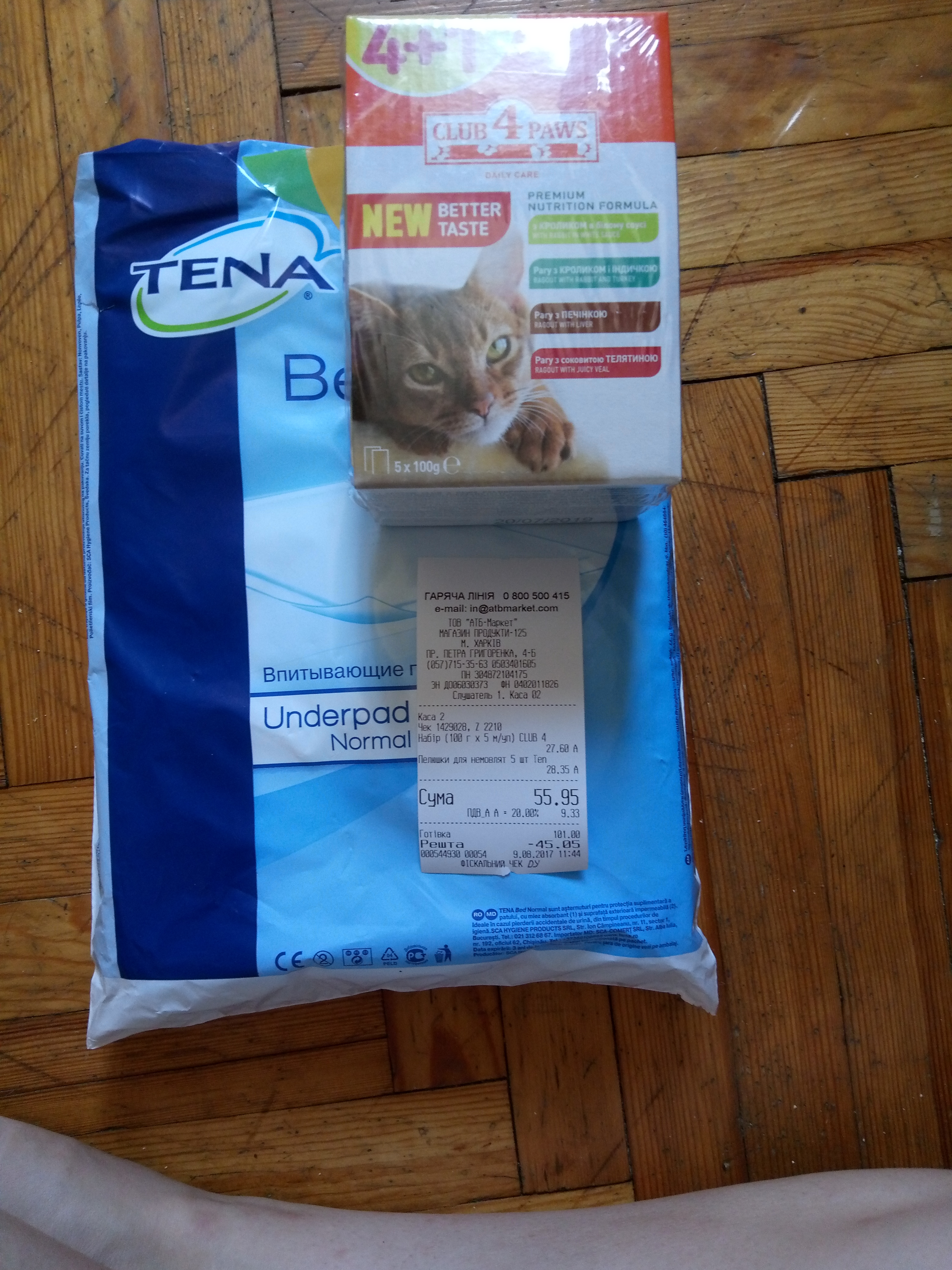 Из трат были куплены Пеленки в клетку за 39.90 грн