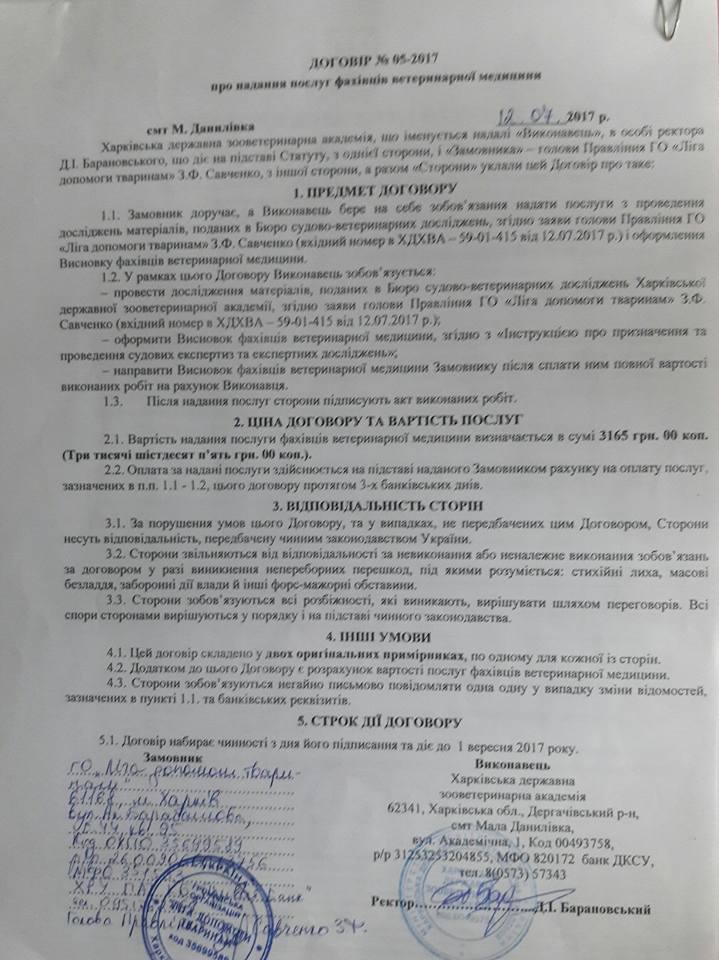 Официально вскрытие и выдача экспертного заключения обошлась зоозащитникам в 3 тысячи 150 грн.